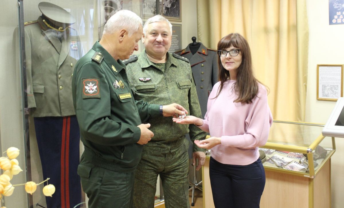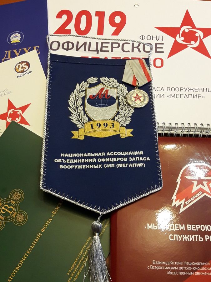 В заключение встречи генерал-полковник Владимир Зарицкий подарил музею медаль Фонда поддержки офицеров запаса «ОФИЦЕРСКОЕ БРАТСТВО», много интересных и полезных материалов с атрибутикой Национальной Ассоциации «Мегапир», Благотворительного фонда «Воскресение» и оставил запись в Книге почетных гостей.