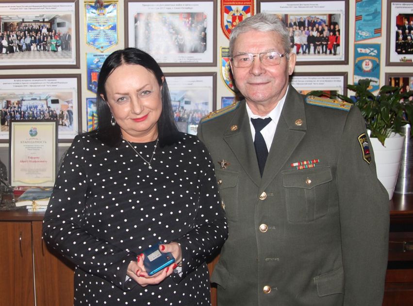 На снимке: полковник Александр Захаров с управляющей клуба Еленой Баратовой.