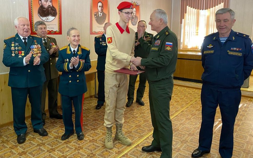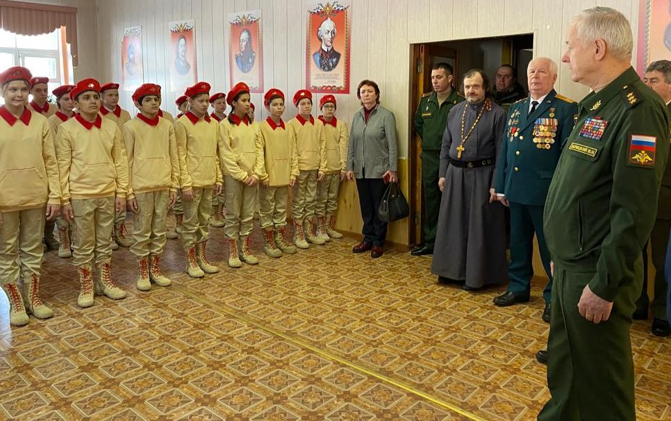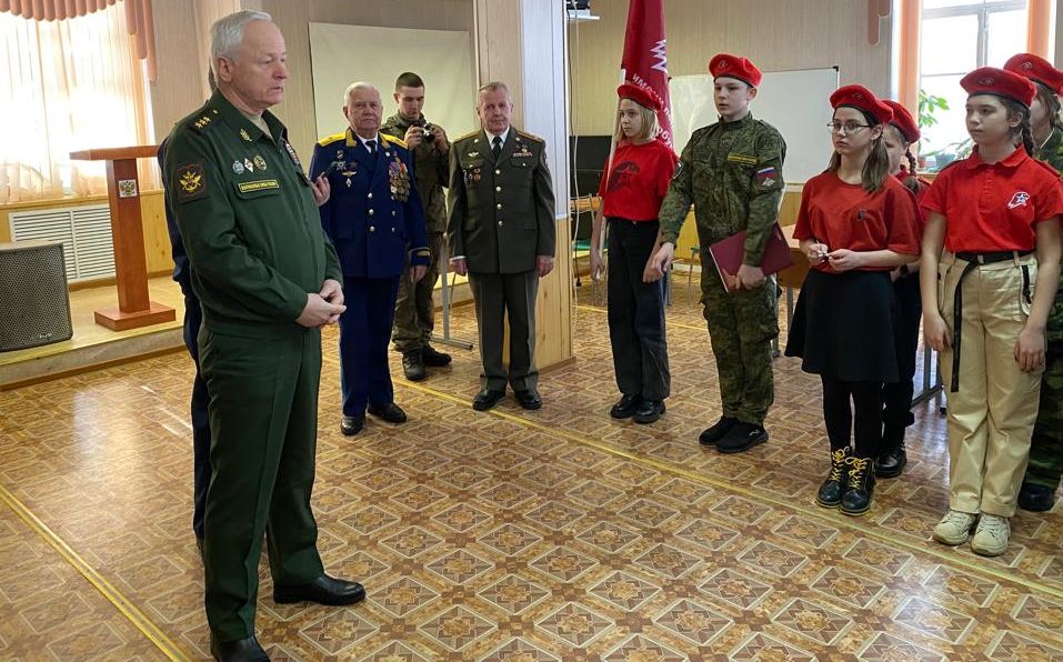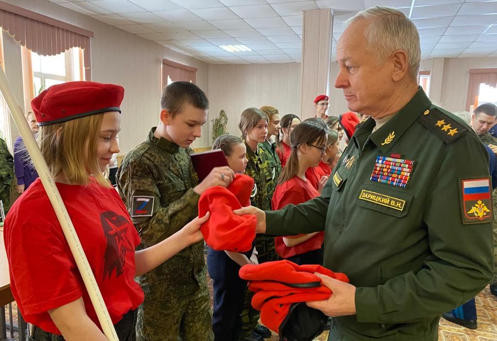 Генерал-полковник Владимир Зарицкий вручил юнармейцам береты и значки, приобретённые на личные средства, передал поздравления молодым юнармейцам от члена Общественной палаты Российской Федерации, заместителя председателя Общественного совета при Минобороны России, председателя Совета директоров Национальной Ассоциации «Мегапир» Александра Каньшина.