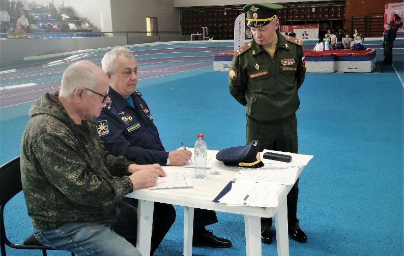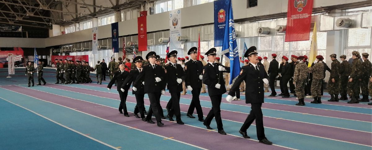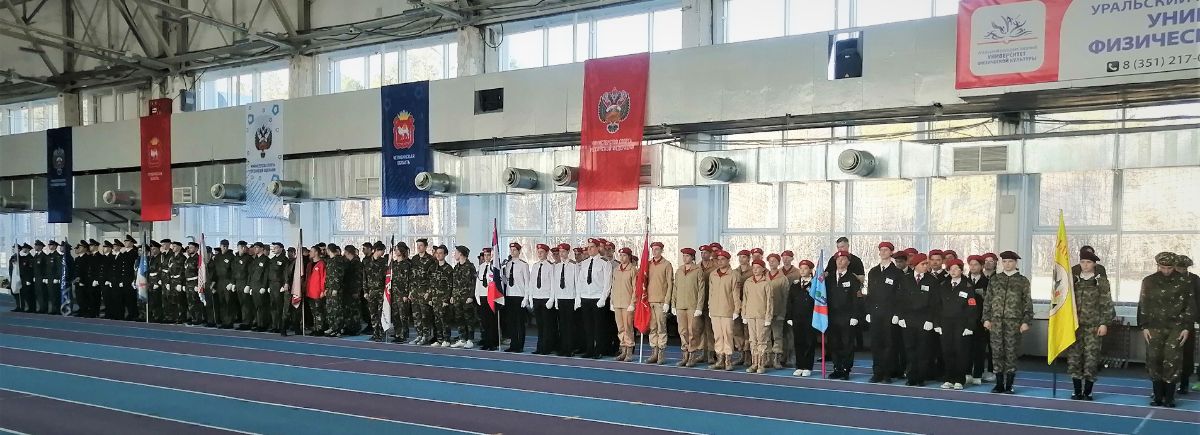 Военно-спортивный сбор прошел в легкоатлетическом манеже Уральского государственного университета физической культуры, где обучающиеся показали навыки начальной военной подготовки, взаимопомощи и слаженности.