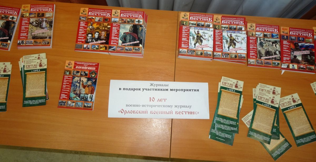 За десять лет было выпущено 132 ежемесячных выпуска журнала, 29 выпусков «Библиотечка журнала Орловский военный вестник» и 9 специальных выпусков «Орловский военный вестник». На мероприятии все желающие получили в дар представленные на выставке журналы.