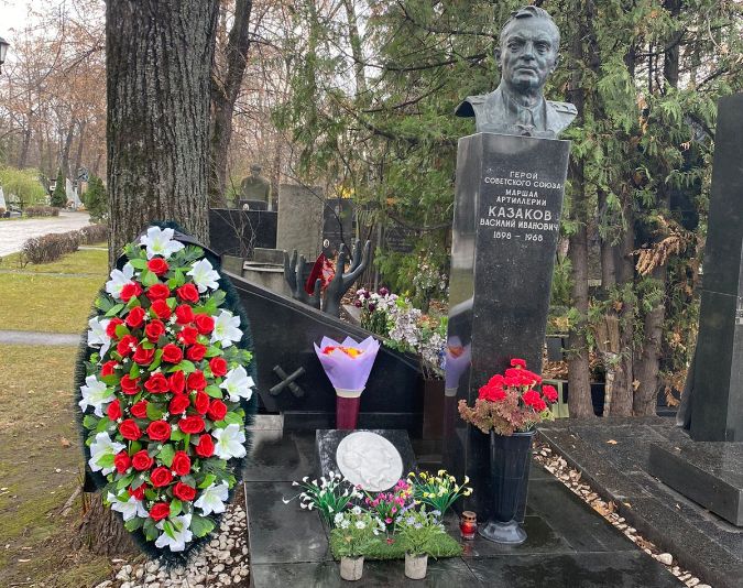 Также, в этот праздничный день, офицеры и ветераны ракетных войск и артиллерии возложили венки и цветы на Новодевичьем кладбище к местам захоронения маршалов артиллерии Василия КАЗАКОВА и Константина КАЗАКОВА.