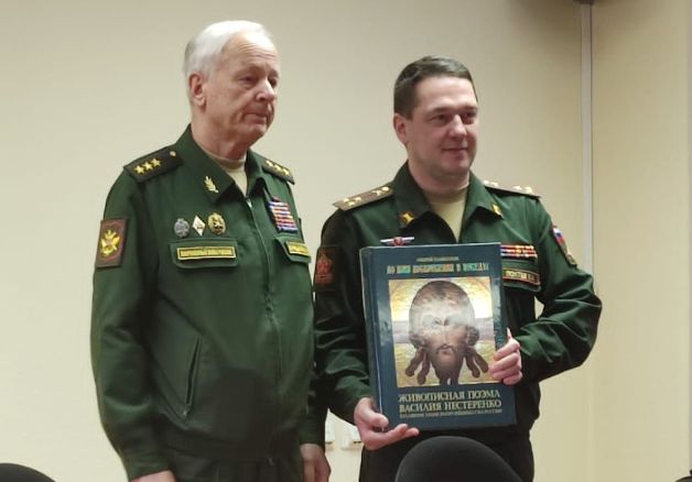 Также генерал-полковник Владимир ЗАРИЦКИЙ передал в дар Военному комиссариату города Москвы книгу «Во имя Воскресения и Победы. Живописная поэма Василия Нестеренко в Главном храме Вооруженных Сил России».