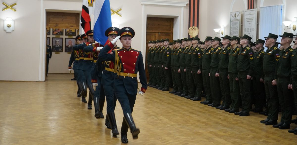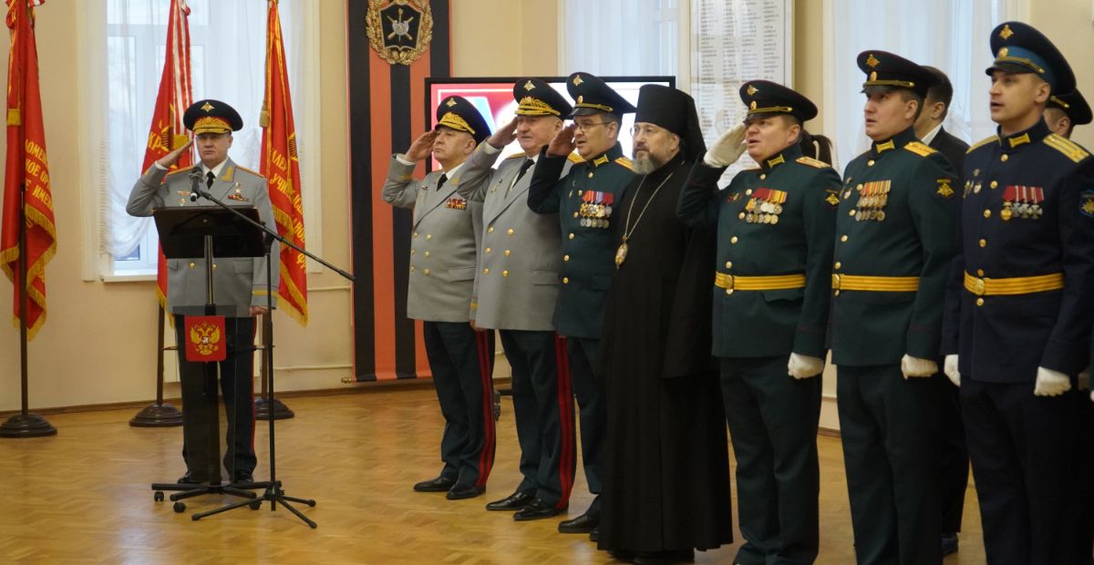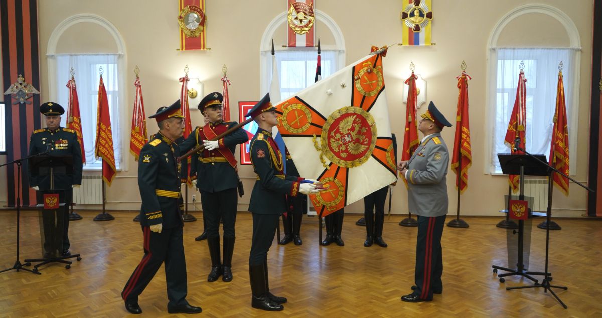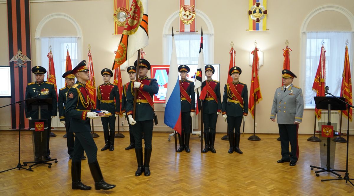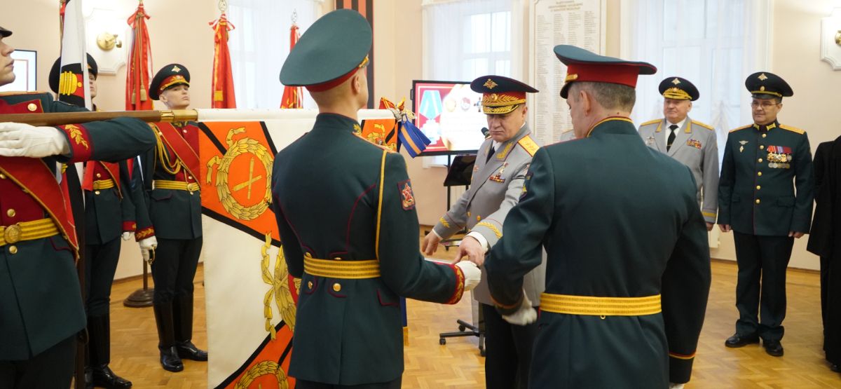 После доклада временно исполняющего обязанности начальника Михайловской артиллерийской академии генерал-майора Олега КИСЕДОБРЕВА, награду на Боевое Знамя прославленноого учебного заведения в Георгиевском зале прикрепил Герой России, главнокомандующий Сухопутными войсками Вооруженных Сил Российской Федерации генерал-полковник Андрей МОРДВИЧЕВ.