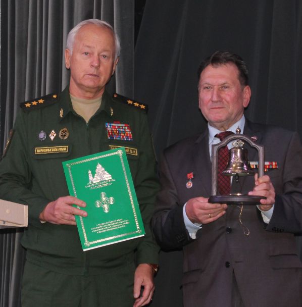 От имени председателя Совета Ассоциации, члена Общественной палаты Российской Федерации Александра Каньшина генерал-полковник Владимир Зарицкий наградил заслуженных ветеранов общественными наградами и вручил сувенирную продукцию Благотворительного фонда «Воскресение», в том числе освященную копию колокола Главного храма Вооруженных Сил и сертификат.