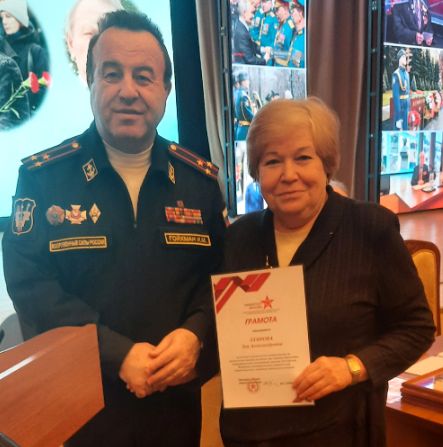 В завершение выступления Игорь Михайлович по поручению президента Фонда поддержки ветеранов и офицеров запаса Сухопутных войск Вооруженных Сил «Офицерское Братство» генерал-полковника Владимира ЗАРИЦКОГО наградил грамотами сотрудников Общественного мемориально-патронатного Центра Наталью ЗБРУЕВУ, Зою ЕГОРОВУ, Юрия ЛАВРЕНТЬЕВА и Вячеслава СИВКО за добросовестное выполнение должностных обязанностей в 2025 году.