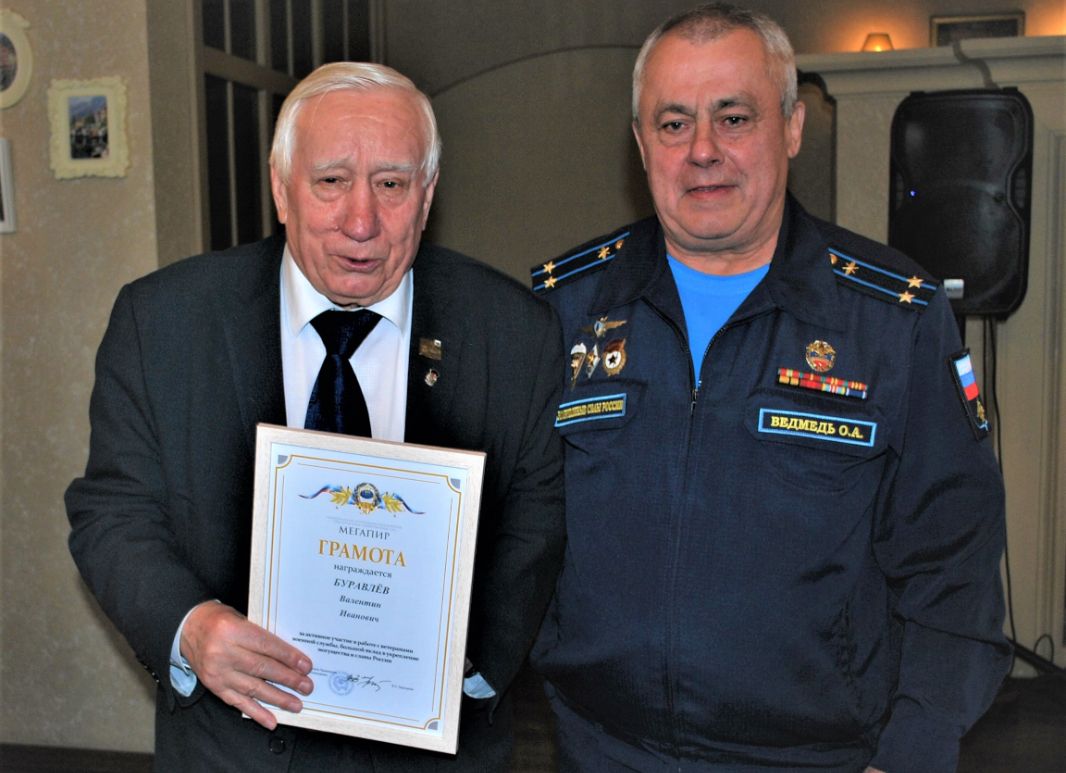 От имени председателя Правления Ассоциации генерал-полковника Владимира ЗАРИЦКОГО подполковник Олег ВЕДМЕДЬ наградил грамотой председателя городского совета ветеранов подполковника Валентина БУРАВЛЁВА, медалью Ассоциации «30 лет на службе Отечеству» заместителя председателя городского совета ветеранов полковника Владимира МУРЗИНА.