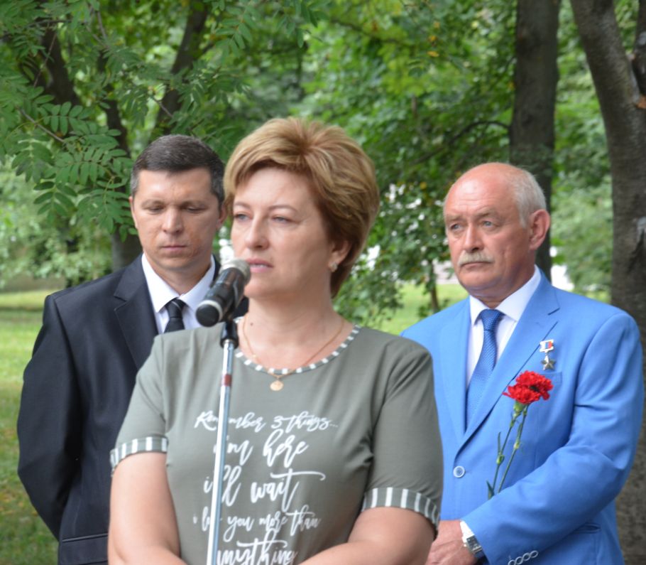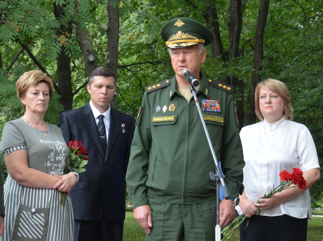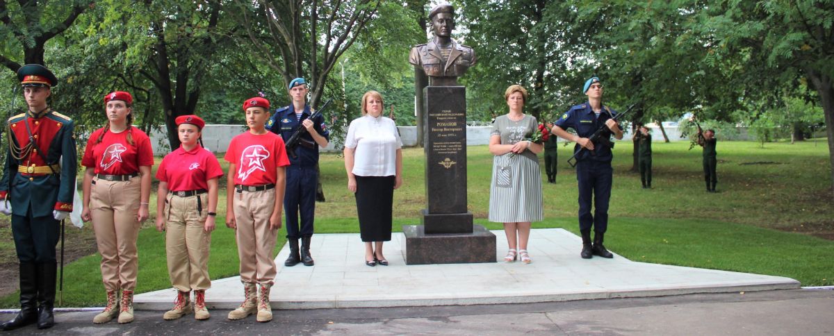 Право открыть бюст предоставили временно исполняющей обязанности главы городского округа Коломна Людмиле Мордовской и вдове погибшего офицера Наталье Романовой.