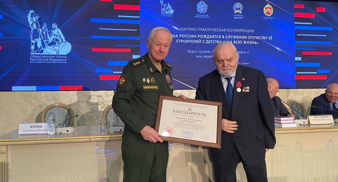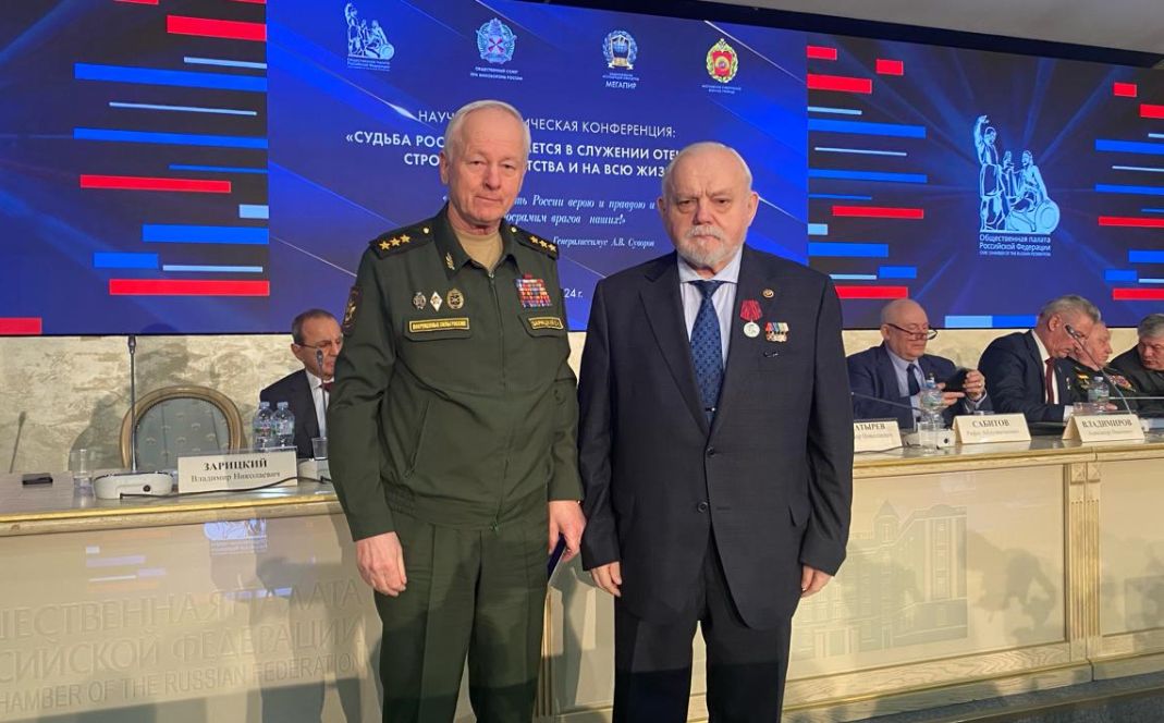 10 апреля 2024 года в Общественной палате Российской Федерации состоялась научно-практическая конференция на тему «Судьба России рождается в служении Отечеству её строителей – с детства и на всю жизнь». Её организовали комиссия Общественной палаты по развитию информационного сообщества, СМИ и массовых коммуникаций совместно с Общественным советом при Минобороны России, попечительским советом Московского суворовского военного училища, Союзом журналистов России и Национальной Ассоциацией объединений офицеров запаса Вооруженных Сил (МЕГАПИР).