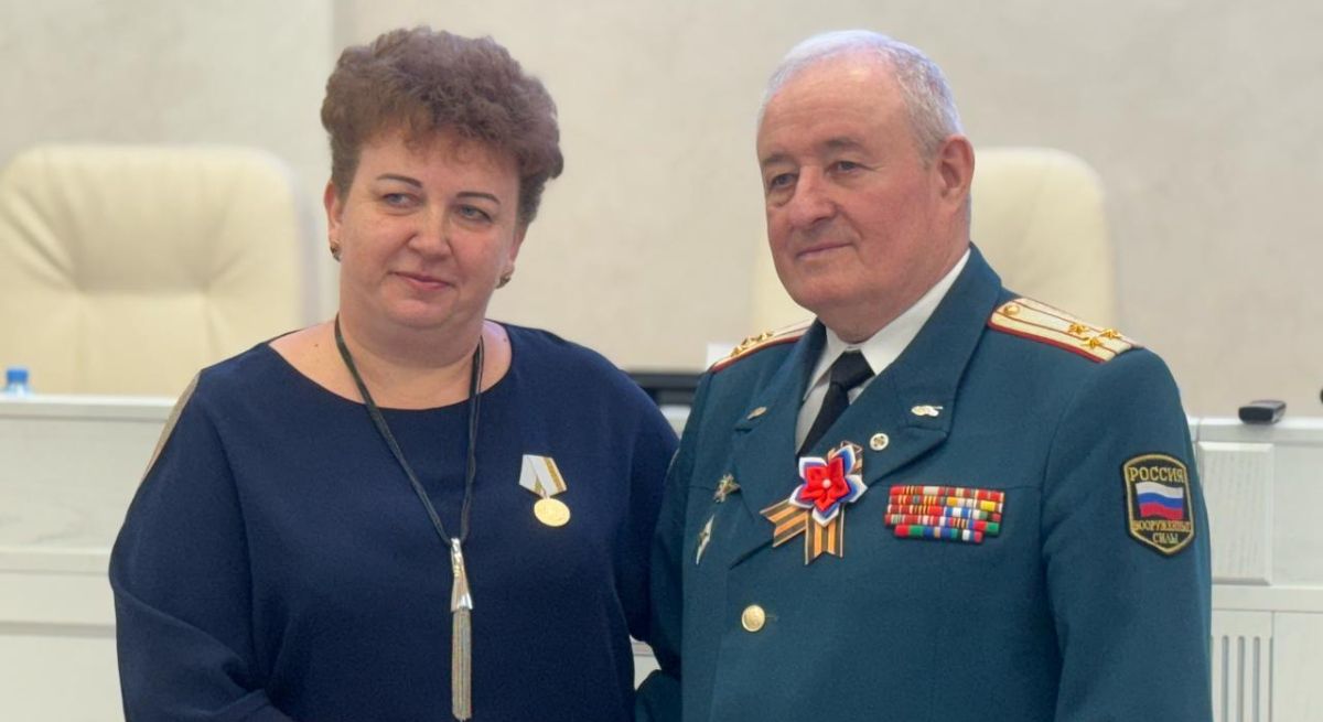 Открылось заседание церемонией награждения, на котором член Старооскольской территориальной избирательной комиссии полковник Анатолий МАРЧЕНКО, за активную работу по оказанию помощи участникам СВО, вручил Любови Александровне ОКОРОКОВОЙ медаль Ассоциации «За сотрудничество и содействие».