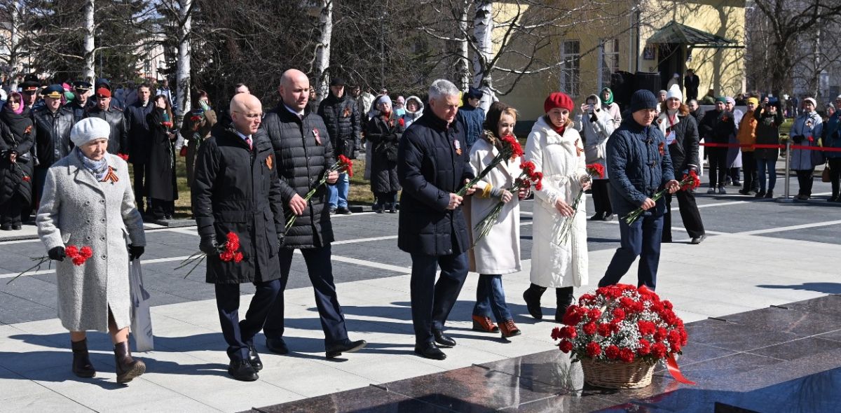 У мемориала «Вечный огонь» Глава Республики Карелия Артур ПАРФЕНЧИКОВ обратился к участникам торжественной церемонии со словами глубокого уважения и благодарности павшим героям, отдавшим свои жизни за независимость и свободу Отечества.
