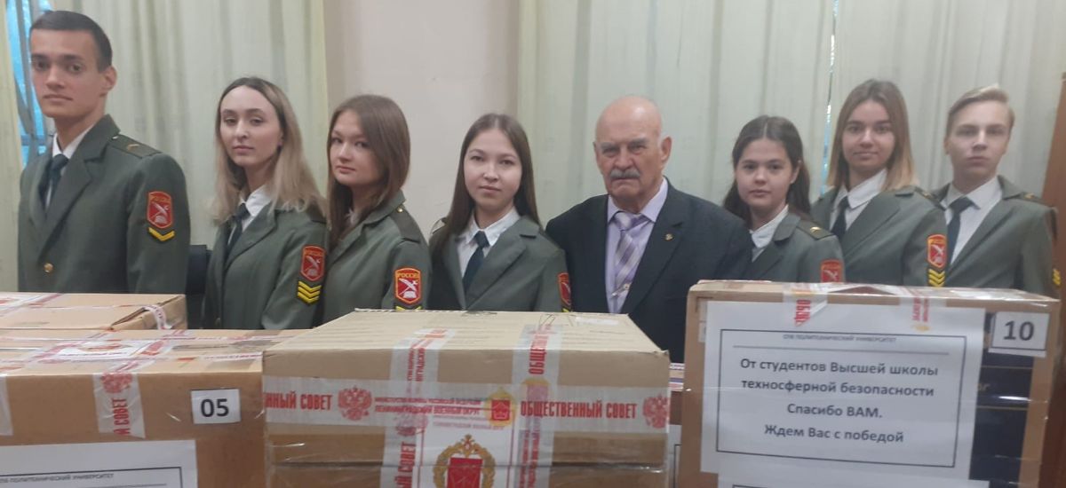 30 сентября 2024 года заместитель председателя Правления Национальной Ассоциации объединений офицеров запаса Вооруженных Сил (МЕГАПИР) – руководитель Представительства в Ленинградском военном округе полковник Юрий КЛЁНОВ сообщил, что студенты Высшей школы техносферной безопасности инженерно-строительного института Санкт-Петербургского политехнического университета Петра Великого собрали большую партию гуманитарной помощи для участников специальной военной операции. В нее вошли продукты, в том числе сладости, медикаменты, белье и носки, предметы личной гигиены...