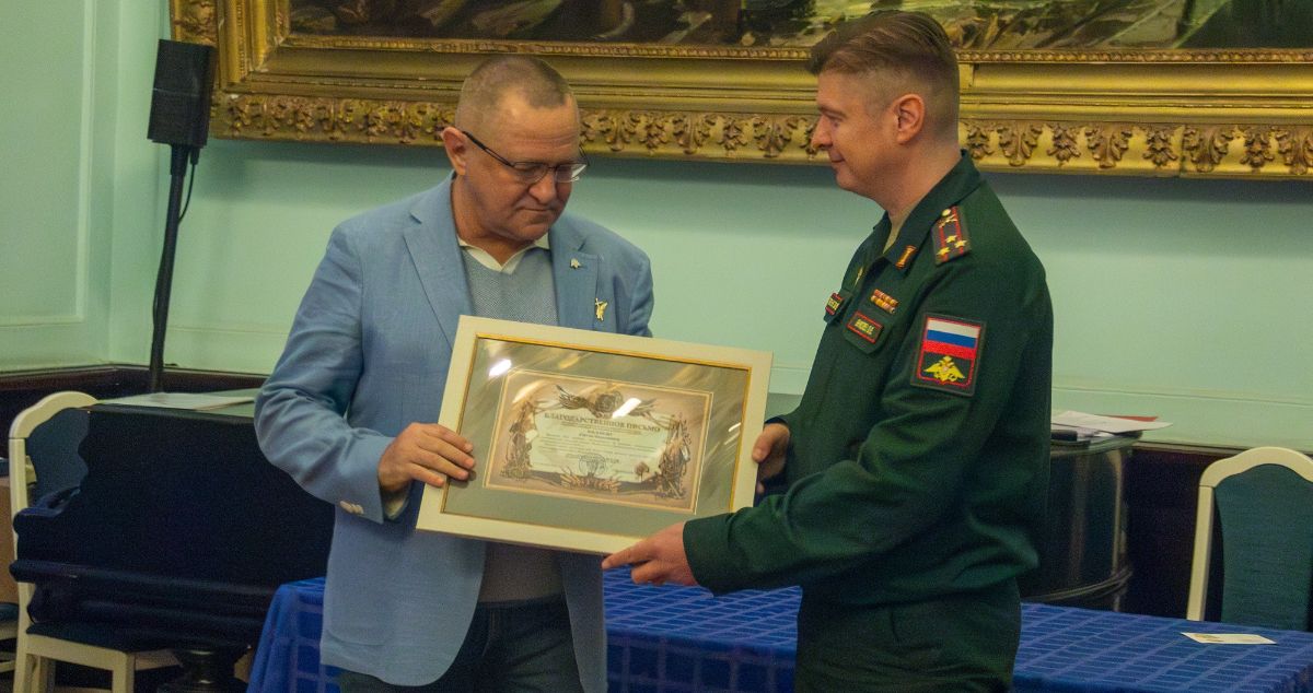 12 октября 2024 года в Доме офицеров Ленинградского военного округа при содействии командования состоялось награждение представителей общественных организаций, волонтеров и благотворителей за поддержку участников специальной военной операции и членов их семей. Награждение провел президент региональной общественной организации социально-правовой помощи инвалидам «Русичи-центр» Сергей ФИЛОНОВ.