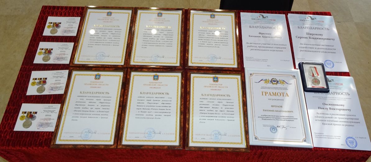 Приказом Министра обороны Российской Федерации от 18 мая 2021 года № 323 знака отличия «За отличие в поисковом движении 3 степени» были удостоены четыре человека. Награды им вручил председатель Орловского регионального отделения «Поискового движения России» Сергей Щербатый.
