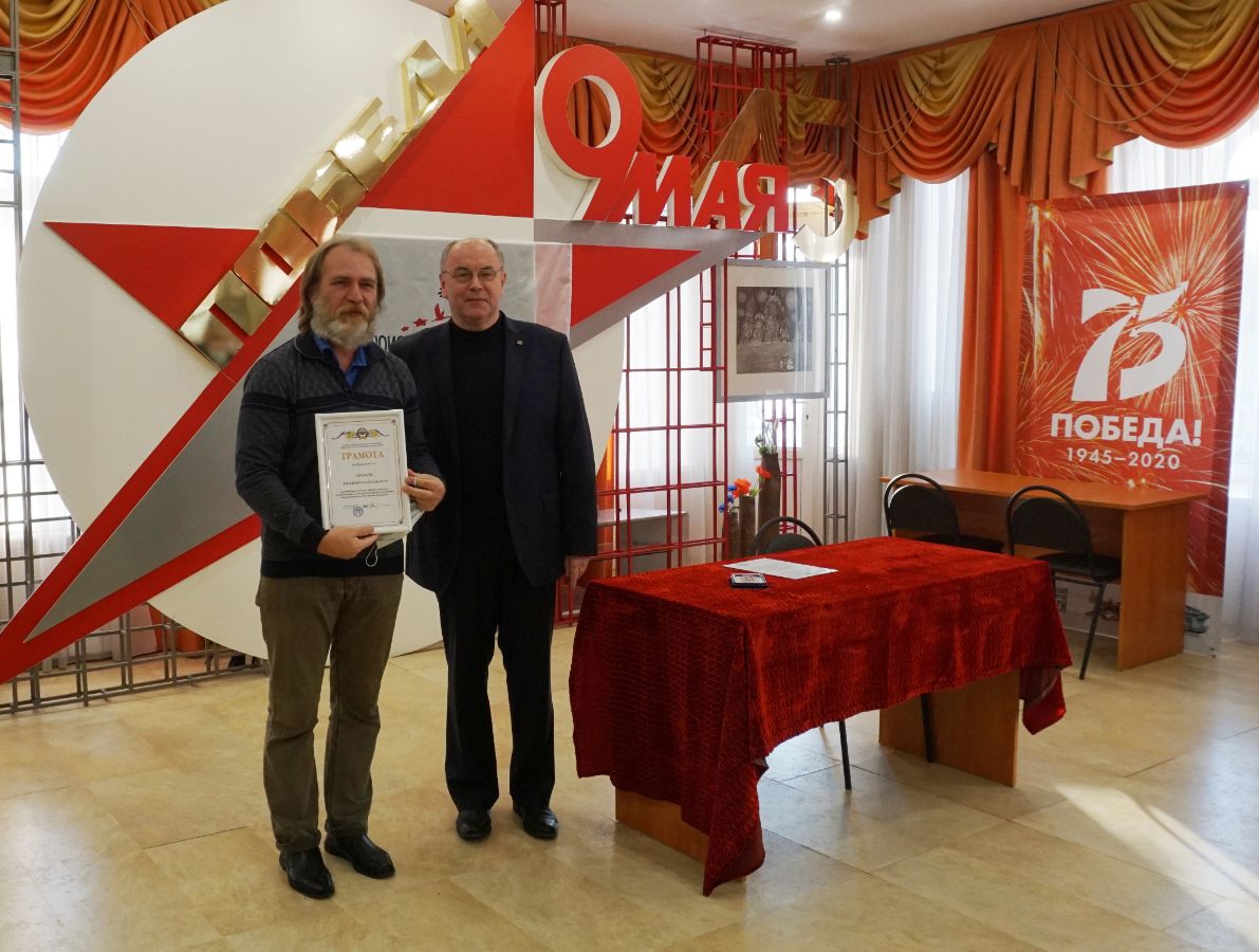 Представитель Национальной Ассоциации объединений офицеров запаса Вооруженных Сил (МЕГАПИР) в Орловской области Сергей Широков вручил награды Ассоциации председателю молодёжного поискового объединения «Огненная дуга» Николаю Андрееву и председателю редакционной коллегии Книги Памяти Орловской области Евгению Фролову.