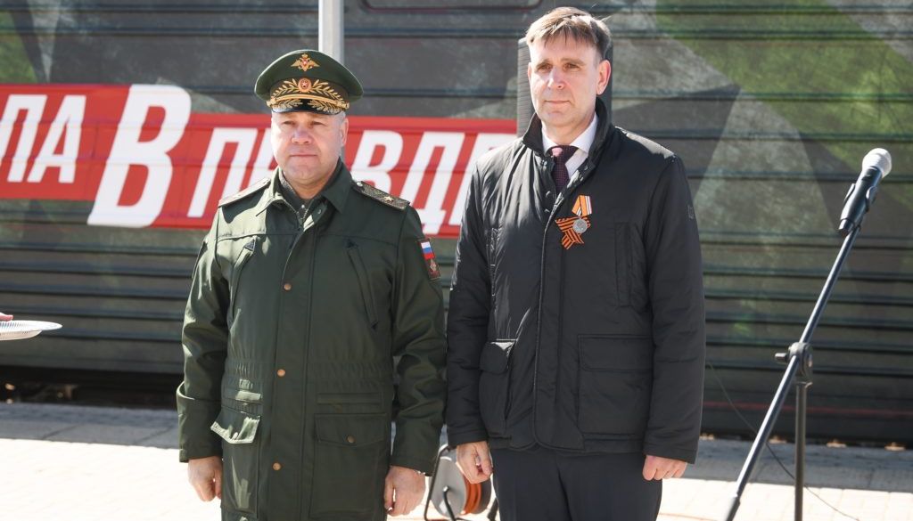 Руководитель агитационно-пропагандистской акции «Сила в правде» – начальник поезда генерал-майор Геннадий ТУЧИН рассказал, что это – 71-я остановка поезда в вашем замечательном городе городе воинской славы. Девять экспозиций под руководством офицеров расскажут вам о том, как сегодня наши братья выполняют задачи в зоне СВО. Они борются с самым страшным злом, которое наши прадеды победили в годы Великой Отечественной войны. Наша цель – показать вам, как честно и добросовестно они выполняют свои задачи и освобождают народ Донбасса. Самое главное – эта акция нужна нам для истории, для будущего, для того, чтобы никто и никогда не посмел сказать, что Россия в чем-то неправа», – отметил Геннадий Анатольевич.