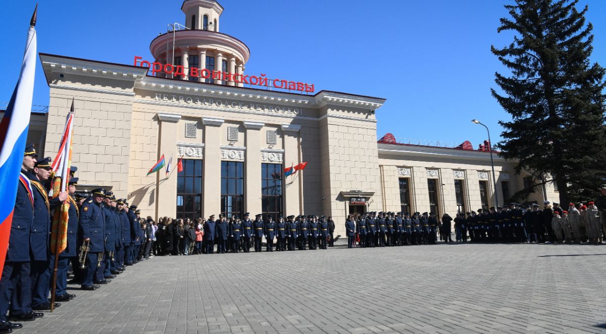 На железнодорожном вокзале состоялся торжественный митинг с участием сотрудников администрации республики, военнослужащих Петрозаводского гарнизона, ветеранов, юнармейцев, кадетов и членов общественных организаций.