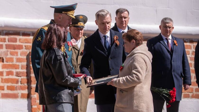 В ходе митинга губернатор Смоленской области Василий АНОХИН вручил медаль «Золотая Звезда» супруге и матери смолянина, выпускника Военной академии войсковой ПВО Вооруженных Сил Российской Федерации старшего лейтенанта Андрея Александровича БЛОХИНА, погибшего при исполнении служебных обязанностей в зоне специальной военной операции. За героизм и личное мужество он посмертно удостоен звания Героя Российской Федерации.