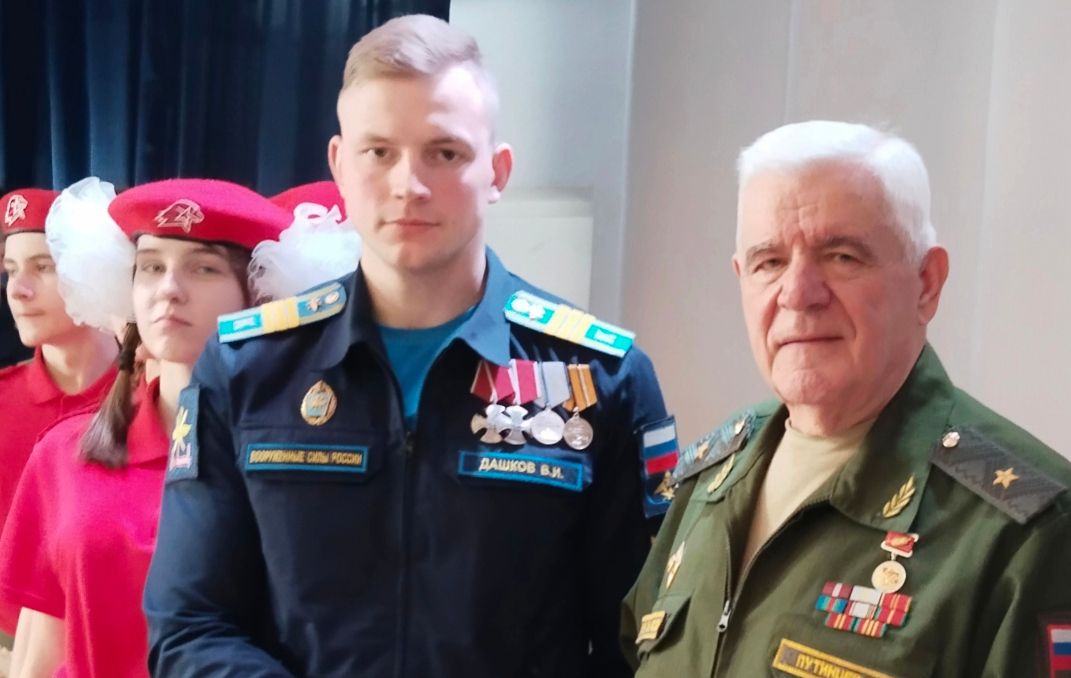 В зале также присутствовали ветераны боевых действий в Афганистане, участники СВО, удостоенные боевых орденов и медалей, а ныне курсанты Военной академии Военно-воздушных сил. От имени областного совета ветеранов и ветеранов военной службы генерал-майор Олег ПУТИНЦЕВ приветствовал и поздравил участников встречи с наступающим праздником, побеседовал с курсантом Владимиром ДАШКОВЫМ, награжденным двумя орденами Мужества и медалью «За Отвагу».