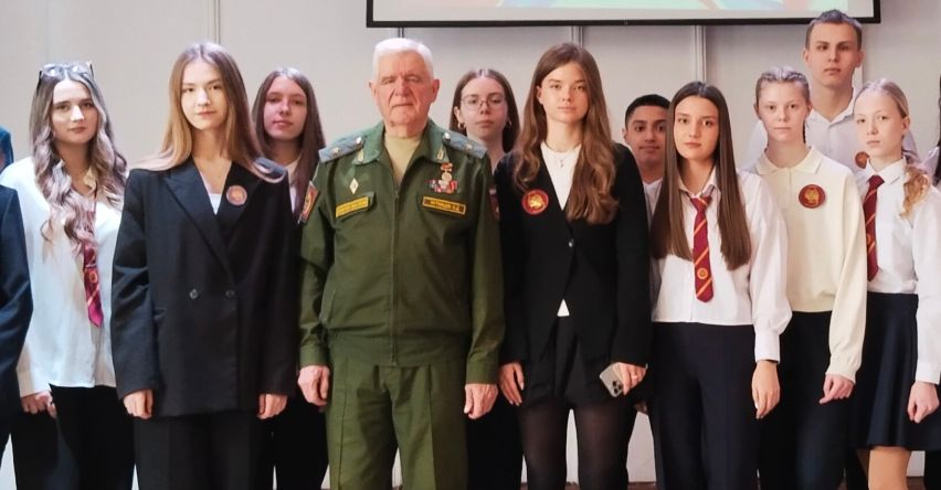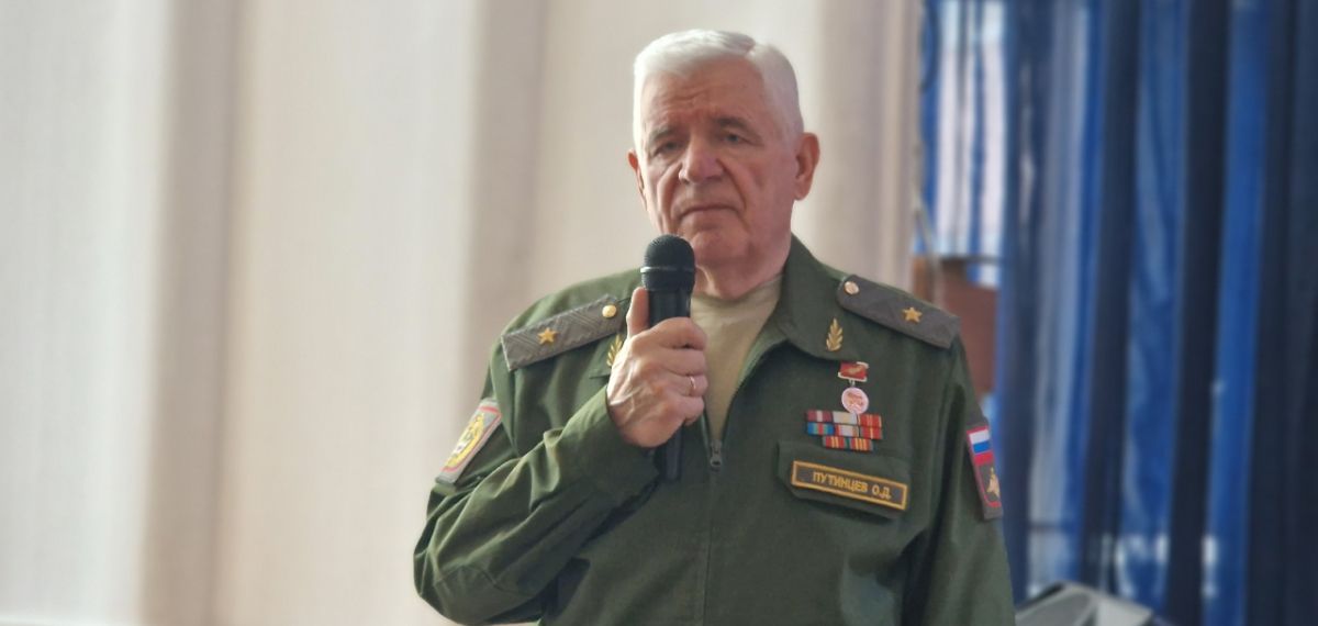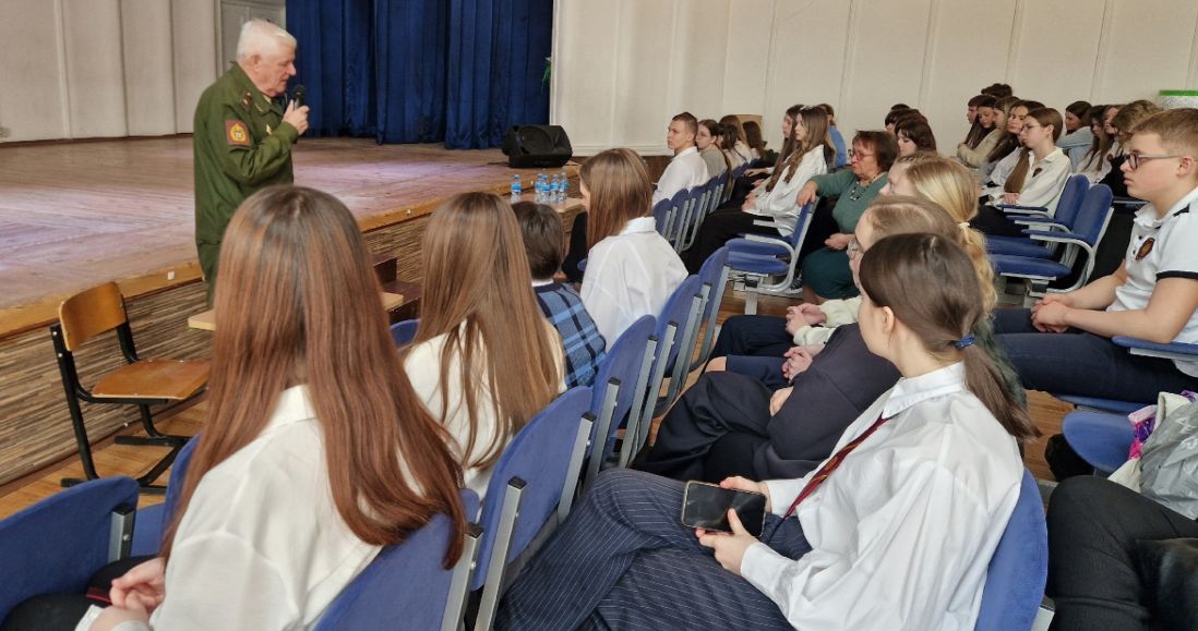 Затем Олег Дмитриевич с учениками 8-10 классов провел Урок мужества «Защита Отечества, долг и обязанность гражданина Российской Федерации», на котором рассказал ученикам о истории праздника, о развитии Вооруженных Сил и их нынешнем составе, о своей ратной службе и династии артиллеристов ПУТИНЦЕВЫХ, о причинах и ходе специальной военной операции.