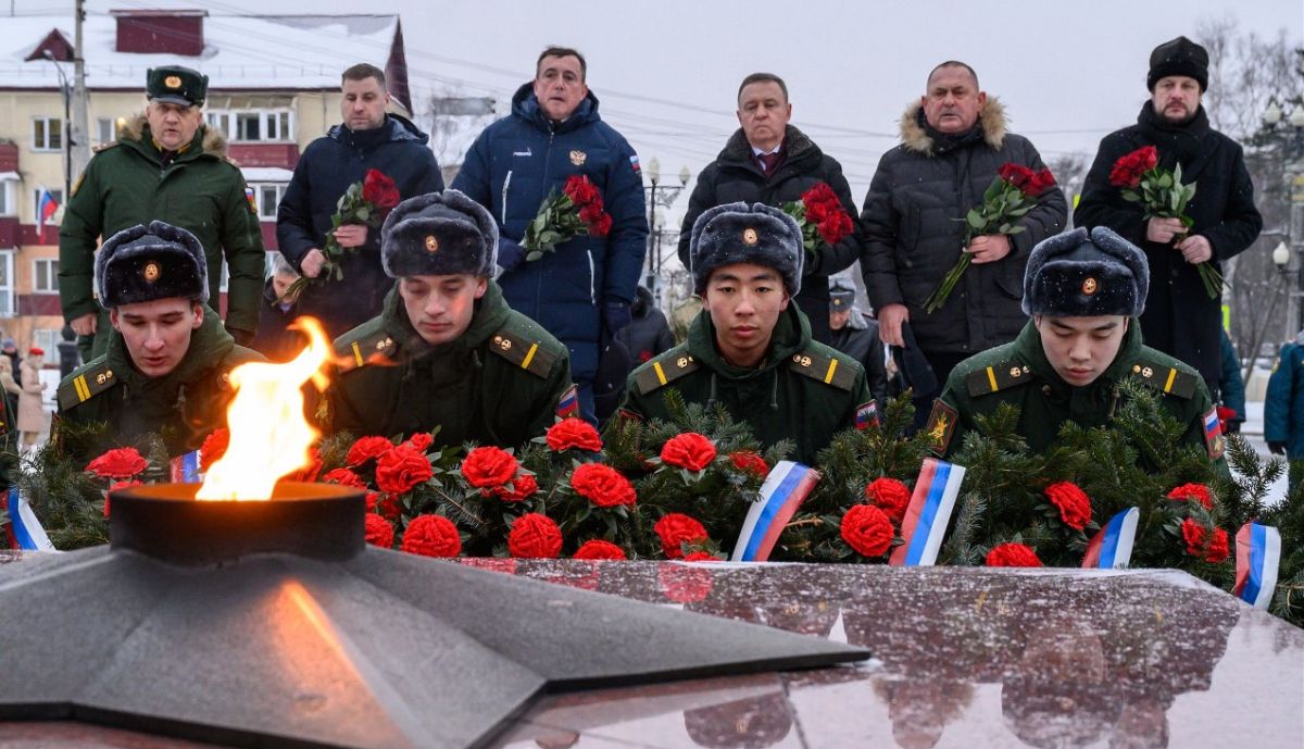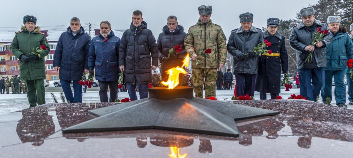 В Южно-Сахалинске в честь Деня защитника Отечества провели церемонию возложения цветов к мемориалу Славы. Память воинов, павших в боях за свободу и независимость нашей Родины, минутой молчания почтили члены Представительства Ассоциации в Сахалинской области, ветераны, военнослужащие, представители общественных организаций и органов власти, жители и гости города.