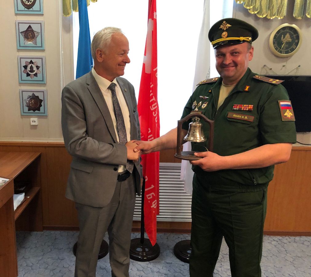 Перед отъездом генерал-полковник Владимир Зарицкий вручил командиру бригады гвардии полковнику Игорю Янину и председателю Совета полковнику Юрию Соловьеву малые копии Главного колокола Храма и сертификаты, альбомы о Патриаршем соборе Русской Православной Церкви во имя Воскресения Христова – Главном храме Вооружённых Сил Российской Федерации, а также сувенирную продукцию Ассоциации и Благотворительного фонда «Воскресение».