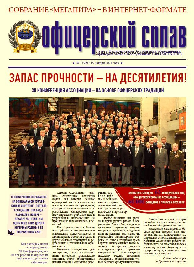 С материалами о деятельности Ассоциации за отчетный период можно ознакомиться в очередном выпуске газеты «Офицерский сплав». Скачать в PDF