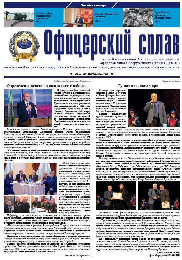 22 ноября 2022 года, в канун Дня матери, по инициативе Национальной Ассоциации объединений офицеров запаса Вооруженных Сил (МЕГАПИР) в Общественной палате Российской Федерации состоялась церемония под девизом «Сердце солдатской матери», в ходе которой прошло чествование семей военнослужащих всех категорий, в том числе участников контртеррористических и специальных военных операций, и награждение их общественными наградами.